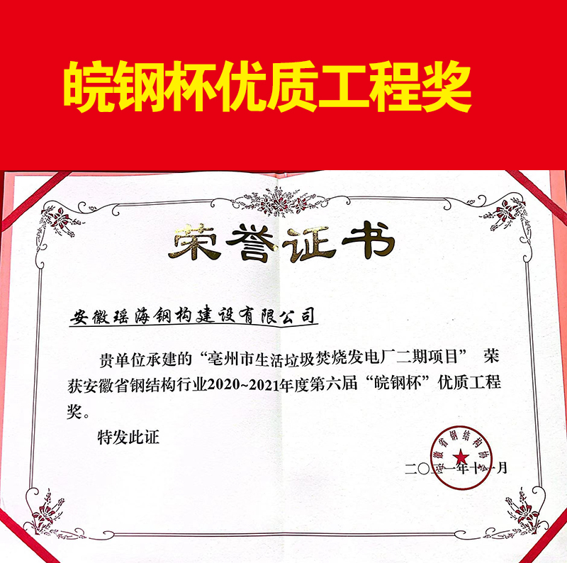 安徽省鋼結(jié)構(gòu)2020~2021年度第六屆“皖鋼杯”優(yōu)質(zhì)工程獎(jiǎng)