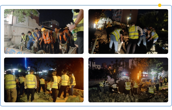 當(dāng)夜幕低垂,大多數(shù)人選擇安臥于溫馨的家中時,有一群人卻迎著夜色出發(fā),他們的目的地是二十埠河畔。這群特殊的夜行者是瑤海鋼構(gòu)搶險救災(zāi)先鋒突擊隊,他們中有廣大黨員干部和職工。在這群人中,年齡最小的26歲,年齡最大的62歲,他們共同的使命是預(yù)防河水倒灌,保衛(wèi)我們共有的家園。
