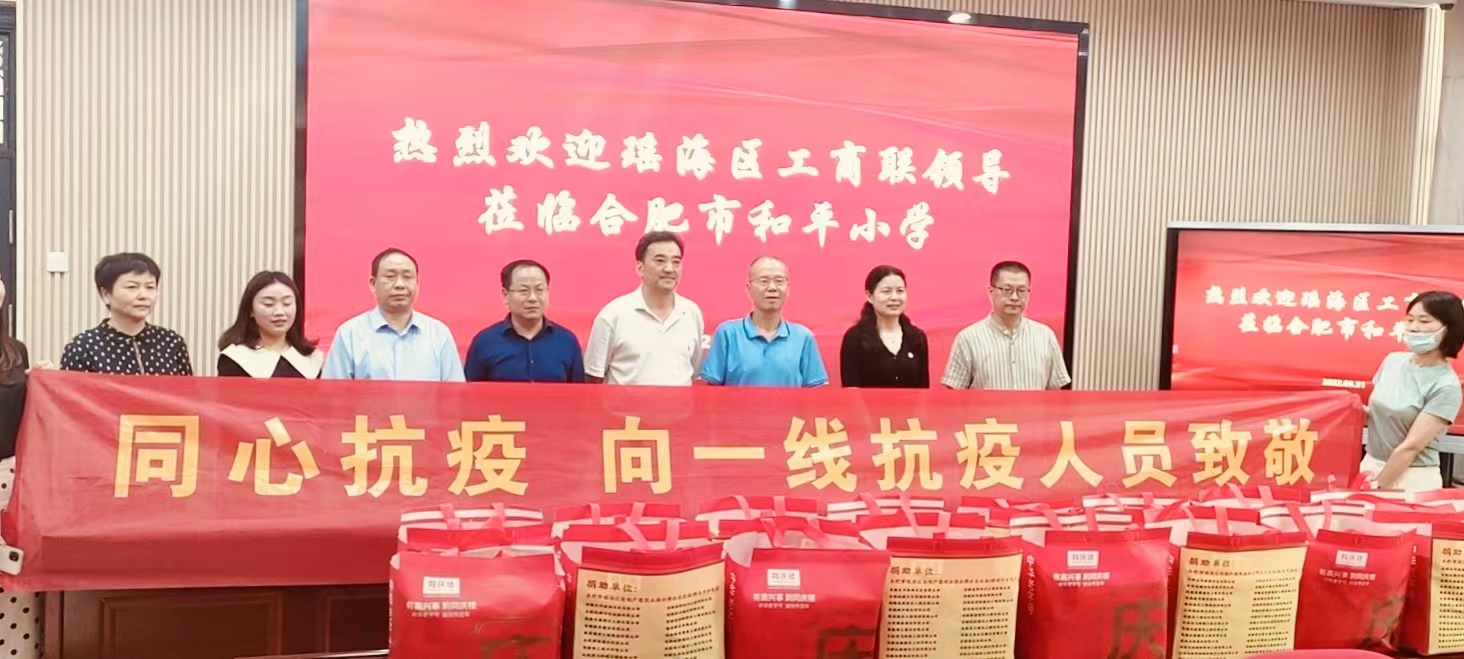 5月31號,瑤海區工商聯攜手安徽瑤海鋼構集團、安徽盒子健康、同慶樓等企業向合肥市瑤海區和平路小學、合肥市三十八中學、合肥市少兒藝術學校捐贈愛心防疫物資