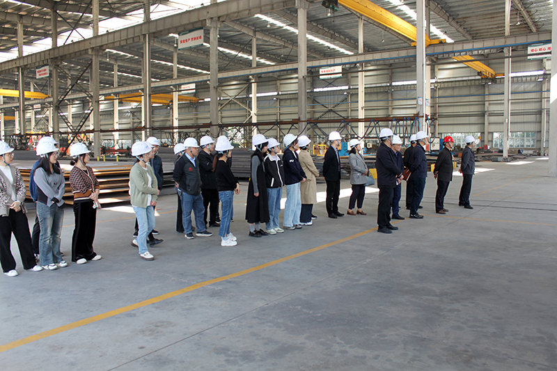 在活動當天,公司全體員工在車間負責人的帶領下,實地查看了鋼構件的生產過程和工藝流程。車間內機器轟鳴,工人們正在緊張有序地工作著,各道工序井然有序,嚴謹細致。