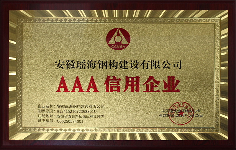 AAA級(jí)信用企業(yè)認(rèn)證是具權(quán)威性企業(yè)信用評(píng)價(jià)體系,評(píng)審標(biāo)準(zhǔn)涵蓋企業(yè)誠(chéng)信經(jīng)營(yíng)、財(cái)務(wù)狀況、履約能力、社會(huì)責(zé)任等多個(gè)維度。此次獲評(píng)充分體現(xiàn)了瑤海鋼構(gòu)在建筑鋼結(jié)構(gòu)領(lǐng)域的綜合實(shí)力和良好信譽(yù)。