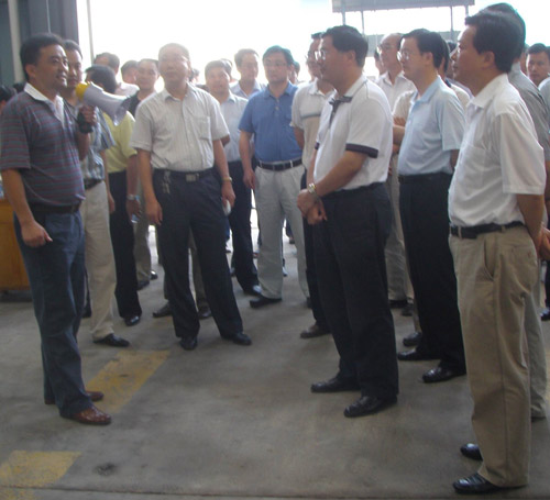 2008年7月12日,合肥市市長吳存榮、政協主席董昭禮、常務副市長張曉麟等相關領導蒞臨我公司考察工作。吳存榮市長及相關領導認真聽取公司發展介紹, 深入了解原材料價格波動給企業帶來的影響,在公司董事長凌宏斌的陪同下仔細察看公司生產狀況,并大力鼓勵企業積極應對挑戰,全力加快發展。