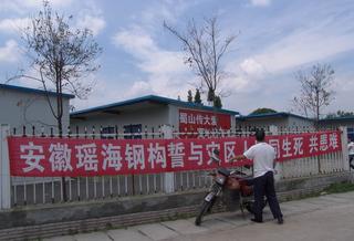 安徽瑤海鋼結(jié)構(gòu)股份有限公司作為一家負(fù)責(zé)任的企業(yè),在5.12地震發(fā)生后的第一時(shí)間內(nèi),就通過合肥市工商企業(yè)聯(lián)合會(huì)向?yàn)?zāi)區(qū)人民捐款5萬元。公司在獲知 國務(wù)院開始部署災(zāi)區(qū)過渡安置房建設(shè)工作后,立即主動(dòng)向省建設(shè)廳請(qǐng)纓參與災(zāi)區(qū)重建工作,成為了合肥市最早支援四川都江堰災(zāi)區(qū)災(zāi)后重建的三家企業(yè)之一。在自身 流動(dòng)資金緊缺、生產(chǎn)能力有限、運(yùn)輸條件不足及外部市場(chǎng)材料供應(yīng)緊張等情形下,我公司不等不靠,發(fā)動(dòng)了一切力量,動(dòng)用了一切資源,想盡了一切辦法,確保了每 天完成100套過渡安置房的生產(chǎn)加工任務(wù),確保了每天最少有5輛平板車的安置房材料發(fā)往災(zāi)區(qū)都江堰。在后方,員工們無上下班觀念、隨叫隨到,加工機(jī)器是日 夜不停,24小時(shí)運(yùn)轉(zhuǎn),真正做到了一切服從援建,一切圍繞援建,一切為了援建。面對(duì)都江堰災(zāi)區(qū)余震不斷、高溫酷暑、語言不通、蚊蟲叮咬、生活不便的惡劣條 件,我公司派出了20多名最得力的管理人員,派駐了30多名最優(yōu)秀的技術(shù)人員,調(diào)集了250多名最能戰(zhàn)斗的施工人員,配備了10多種最先進(jìn)的施工工具,組 織了10多萬元的后勤物資,全體一線援建人員充分發(fā)揚(yáng)了不怕苦、不怕累、不怕流血犧牲的革命精神,冒余震、斗饑渴、頂烈日、戰(zhàn)酷暑、小雨大干、大雨小干、 不下雨拚命干,確保了每天最少完成80套過渡安置房的安裝任務(wù)。同時(shí)公司積極主動(dòng)協(xié)助市前線指揮部有效解決了安裝場(chǎng)地不足,當(dāng)?shù)鼗螅┕さ缆凡粫车?問題,得到了省、市指揮部領(lǐng)導(dǎo)的高度肯定。在施工進(jìn)入決戰(zhàn)攻堅(jiān)期間,公司在建設(shè)現(xiàn)場(chǎng)上每天投入的人員達(dá)400多人次,所有管理人員都晝夜堅(jiān)守在施工現(xiàn)場(chǎng), 與工人一道連續(xù)兩天,24小時(shí)不休息,不眨眼,一身泥、一身汗、拚命干、使勁干,兩天就完成了9928平方米的3所學(xué)校重建任務(wù),贏得了受援單位的高度贊 許。在援建施工現(xiàn)場(chǎng),我公司的現(xiàn)場(chǎng)管理一直是井然有序,人員組織到位,工程質(zhì)量優(yōu)異,零質(zhì)量安全事故,受到了各級(jí)領(lǐng)導(dǎo)的高度評(píng)價(jià)。