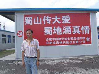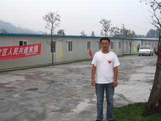 夏源——我公司行政副總暨抗震救災(zāi)施工現(xiàn)場總指揮,他于5月24日,第一時間趕赴四川災(zāi)區(qū),是我公司第一位到達都江堰援建場地的高層管理人員,夏總在災(zāi)區(qū) 一呆就是兩個多月,在這兩個多月里,他帶領(lǐng)一個由管理人員和專業(yè)技術(shù)人員組成的團隊,全權(quán)負責(zé)現(xiàn)場的技術(shù)、質(zhì)量、進度、安全、宣傳、后勤、協(xié)調(diào)、調(diào)配等工 作。