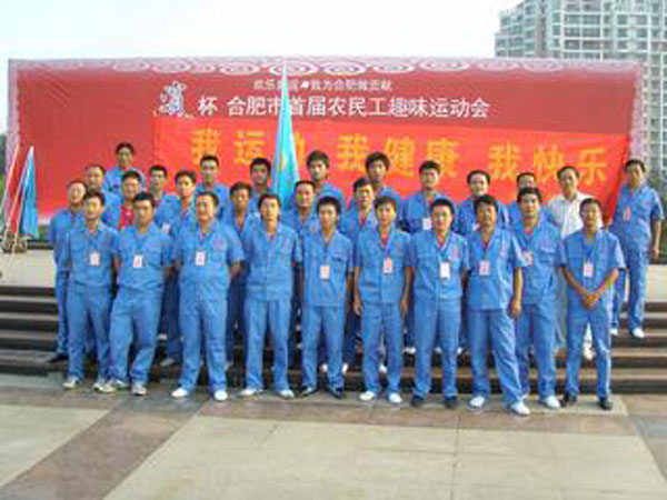 2008年8月26日,我公司組織的農民工代表隊參加了合肥市首屆“濱湖杯——農民工趣味運動會”,運動會上,我公司健兒不畏強敵、奮勇拼搏,取得了第二 名的好成績。同時由于我公司運動健兒表現出色,賽出了風格,體現了良好的精神風貌,獲得了組委會頒發的“最佳風格”獎。
