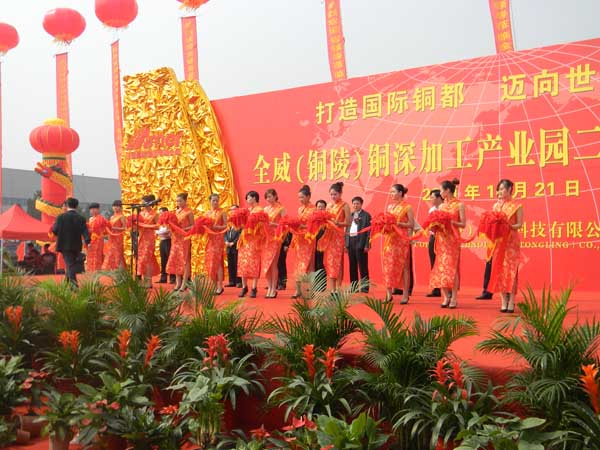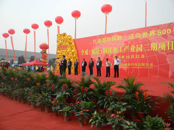 2011年10月21日上午九點整,由我司承建的全威(銅陵)銅業(yè)科技有限公司二期廠房舉行開工儀式。銷售總監(jiān)凌必健及合肥明遠建設工程有限公司總經(jīng)理王昌俊參加了此開工儀式。全威(銅陵)銅業(yè)科技有限公司由正威科技(深圳)有限公司與香港正威國際集團、鴻瑋科技集團有限公司在安徽省銅陵市經(jīng)濟技術開發(fā)區(qū)共同投資設立的一家中外合資企業(yè),公司注冊資本12100萬港元。該項目是安徽省“861計劃”重點項目,設備制造商及設計方均為國際、國內(nèi)一流知名企業(yè)。生產(chǎn)達產(chǎn)后產(chǎn)值超百億,產(chǎn)能在行業(yè)內(nèi)居中國和世界前列。全威銅產(chǎn)業(yè)園系列項目總用地面積逾60萬平方米,建筑面積超過30萬平方米, 該項目是全威(銅陵)銅業(yè)科技有限公司在銅陵全威工業(yè)園內(nèi)實施的系列銅加工項目之一,項目建成后,對推進安徽省工業(yè)化進程,促進地方經(jīng)濟發(fā)展需要具有重大的戰(zhàn)略意義。