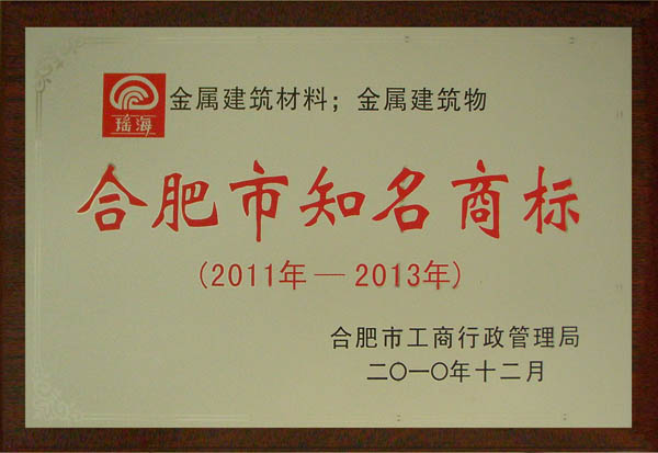 近日,安徽瑤海鋼構生產制造的瑤海牌建筑材料,金屬建筑物被合肥市工商行政管理局認定為“合肥市知名商標”。安徽瑤海鋼構自成立以來一直注重品牌形象的建設,并嚴加保護,經過多媒體多渠道的宣傳,我公司在合肥市、安徽省乃至全國都有一定的知名度,并取得了良好的口碑和市場信譽。之前,公司的商標“瑤海及圖”更是被評選為安徽省著名商標。