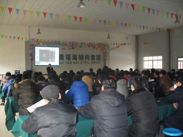 本報訊:2012年1月28日—29日(農(nóng)歷初六初七),當(dāng)人們都還沉浸在喜慶的春節(jié)氣氛中時,瑤海鋼構(gòu)已經(jīng)開始了馬不停蹄的培訓(xùn)中,這是多年不變的管理模式,鋼結(jié)構(gòu)股份公司、明遠建設(shè)公司、設(shè)計院及集成房屋班組長及以上人員參加了此次會議。培訓(xùn)的主要內(nèi)容為如何用搓麻的精神來改造我們的職場事業(yè)。培訓(xùn)采用光碟教學(xué)的形式,并由著名講師張金洋老師給予授課,他通過搓麻精神聯(lián)想到作為職場人員更應(yīng)該具有的30種精神: