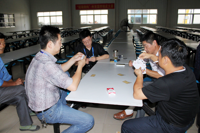 本報訊:2012年9月15日,由公司工會組織的“瑤海鋼構(gòu)”杯首屆炒地皮大賽在公司多功能廳如期舉行,共32名員工參加,共分8組進行。比賽采取層層淘汰的形式,直至產(chǎn)生最后的冠亞季軍。首先進行的小組淘汰賽,每組對手由抽簽決定,經(jīng)過第一輪的校對,運氣不好,技術(shù)有限的員工很快就敗下陣來,贏者進行下一輪的比賽。但對于技術(shù)力量相當?shù)母鹘M對手,你拼我趕,你贏我追,經(jīng)過數(shù)小時的奮戰(zhàn),最終險勝,可謂贏的并不輕松。再接下來的1/4決賽中,比賽的氣氛更是“緊張”,大家步步為營,步步驚心,一局不慎就有可能滿盤皆輸,但強中自有強中手,最終四強小組產(chǎn)生,分別為喬春峰和席慶文;潘立新和宋芝軍;彭守林和張先龍(明遠)、未少明和王一麟。再接下來的冠亞季軍資格賽中,那更是扣人心弦,在彭守林和張先龍(明遠)、未少明和王一麟為一組的比賽中可謂驚心動魄,你來我往,來回混戰(zhàn)N次,當你升級至J級后,對方將你打回“原級”,當對方升至J處,你又將他們打倒“回府”,最后,明遠的彭守林和張先龍兩位不敵鋼構(gòu)的未少明和王一麟,無緣冠亞軍爭奪賽。而喬春峰和席慶文、潘立新和宋芝軍的比賽中,因為技術(shù)力量懸殊,最終潘立新和宋芝軍組獲勝。比賽最后由潘立新和宋芝軍、未少明和王一麟爭奪冠亞軍,彭守林和張先龍對陣喬春峰和席慶文爭奪第三名。在第三名爭奪賽中,彭守林與張先龍最終獲得勝利,喬春峰和席慶文無緣三強。在冠亞軍比賽中,可謂氣氛“緊張”到了極點,這是瑤海鋼構(gòu)巔峰之戰(zhàn),更是瑤海鋼構(gòu)的實力之戰(zhàn),所以每出一張牌都“精打細算”,“精心設(shè)計”,艱難地進行著,但炒地皮運氣很重要,只有技術(shù)拿不到好牌不行,有了好牌沒有技術(shù)更不行,還有更重要的是配合。在經(jīng)過一牌一牌的你追我趕中,最終潘立新和宋芝軍在運氣和技術(shù)的共同作用下拿下了“瑤海鋼構(gòu)”杯炒地皮大賽的冠軍,未少明和王一麟獲得亞軍。