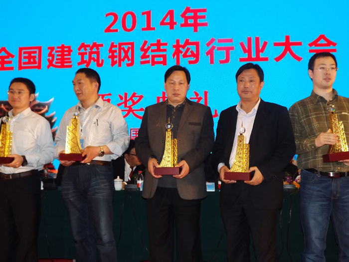 2014年4月18日,全國建筑鋼結構行業大會在湖北武漢國際會展中心隆重召開!由我司承建的日立建機(中國)有限公司第二工業園大型機車間鋼結構(制作、安裝)榮獲二零一三年中國鋼結構金獎(國家優質工程),董事長凌紅兵被評為2013年度中國建筑金屬結構協會優秀工作者。