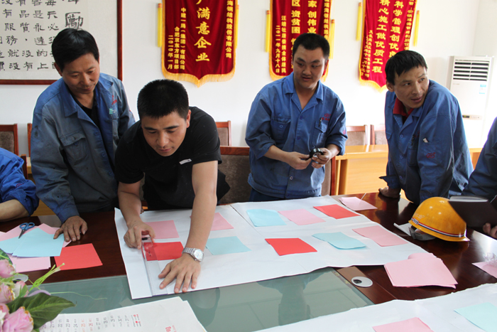 吳老師首先檢查了4月份的5S進展情況,對上次的完成情況進行了打分,并指出推行工作中存在的問題以及改善的方法。隨后,吳老師宣布了5S早會比賽的獲獎情況,第一名為新橋四隊,第二名為李劍璞代表隊和梁永代表隊,第三名為行政代表隊、李賢軍代表隊、生產綜合部代表隊和謝修福代表隊。接著,吳老師布置了5月份的推行工作,分別是以下13項:第一,車間管理看板建立;第二,車間細部劃線定位;第三,貨架上一對一標簽定位;第四,工具柜內整理及明確標示;第五,消防通道凈空;第六,統一制作安全標示;第七,小件物品制作合適鐵框避免混亂;第八,設備狀態牌的制作;第九,開關按鈕清晰可見;第十,車間及辦公室增添漫畫標語;第十一,設法降低生產線半成品數量;第十二,繼續完善4Q表中的Q3及Q4并落實執行;第十三,貨場不要物清理及方向統一。