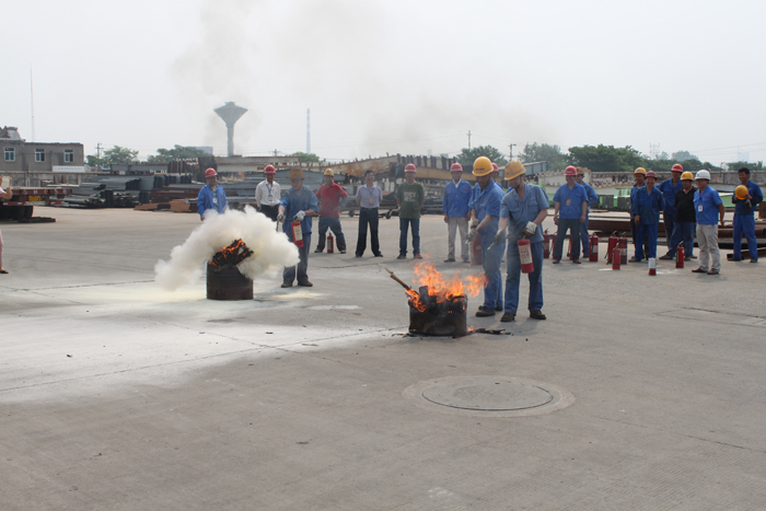 2014年6月14日上午,在輕鋼廠北貨場進行了一場以“強化紅線意識,促進安全發展”為主題的消防應急演練活動。生產系統各廠負責人及其他相關部門負責人應邀參加了此次的消防演練。為進行這次演練活動,公司成立了以生產副總王林為指揮長的消防應急演練領導小組,確立了“安全第一,確保有序;責任明確,落實細節”的演練原則。演練現場,安全員邵靜現場演示使用滅火器滅火的操作要領:在使用前要將瓶體顛倒幾次,使筒內干粉松動,然后除掉鉛封拔掉保險銷,左手握著噴管右手提著壓把,在距火焰兩米的地方,右手用力壓下壓把,左手拿著噴管左右搖擺,噴射干粉覆蓋燃燒區,直至把火全部撲滅。應急演練準備工作做好后,隨著演練火災區的火焰越來越猛,參加演練人員各就各位,進行撲火。整個演練歷時1分50秒,做到快速、安全、有序,活動圓滿完成。此次消防演練活動增強了員工的消防安全意識,對普及消防安全知識和最大限度地保護員工生命和財產起著重要的促進作用。
