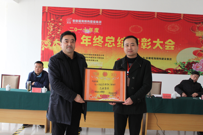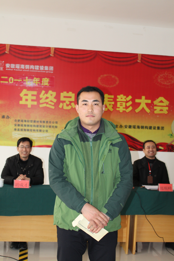 會(huì)議首先由總經(jīng)理助理鄭順?shù)h代表公司領(lǐng)導(dǎo)班子致辭。他首先代表公司領(lǐng)導(dǎo)班子向大會(huì)的召開(kāi)及獲獎(jiǎng)單位和全體獲獎(jiǎng)人員表示熱烈祝賀!向全體員工致以崇高敬意和誠(chéng)摯問(wèn)候!隨后回顧了企業(yè)的成長(zhǎng)歷程,安徽瑤海鋼構(gòu)建設(shè)集團(tuán)前身是合肥瑤海輕型建材有限責(zé)任公司,于1998年成立,20000元起家的小作坊,經(jīng)過(guò)近20年的摸爬滾打,發(fā)展成為如今的集團(tuán)公司…….最后預(yù)祝本次大會(huì)圓滿成功。
