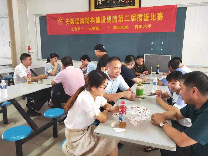 為豐富廣大職工業(yè)余文化生活,喜迎中秋國慶佳節(jié),2019年9月9日下午13點(diǎn),安徽瑤海鋼構(gòu)建設(shè)集團(tuán)在公司食堂舉辦了第二屆職工撲克牌“摜蛋”比賽。本次比賽為“摜蛋”愛好者提供了一次難得的交流機(jī)會(huì),一來豐富了員工的業(yè)余生活,二來也可通過比賽促進(jìn)各部門和員工間的情感交流。