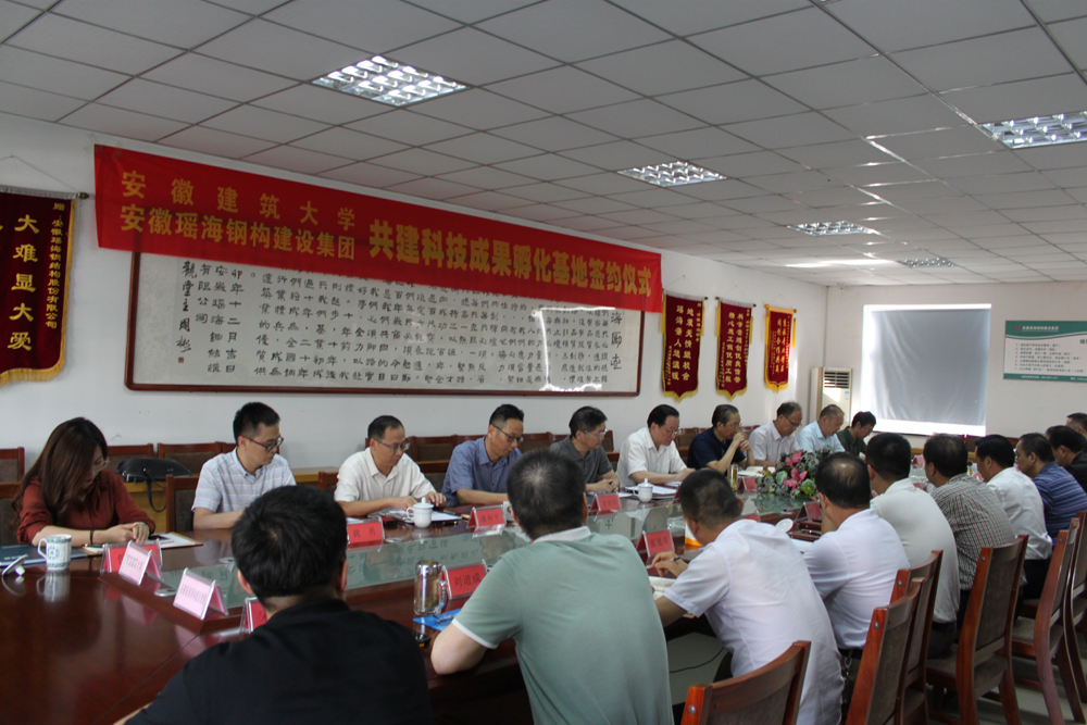 本報訊:2020年8月27日下午16:00,安徽建筑大學與安徽瑤海鋼構建設集團共建科技成果孵化基地簽約儀式在瑤海鋼構舉行。