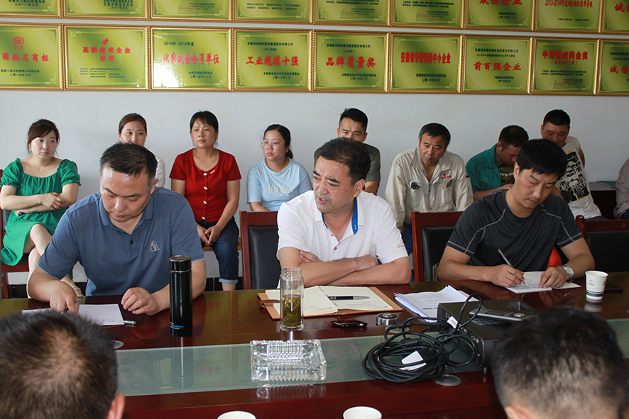 7月31日下午,董事長凌紅兵一行在新橋瑤海鋼構生產基地,召開月度工作會議上要求,緊抓安全生產,強化安全發展,增強全員安全意識,創建平安企業,每個職工必須時時在心上,人人在狀態。牢記“消除事故隱患,筑牢安全防線”。為在安徽瑤海鋼構建設集團內部營造人人重視安全生產的氛圍打牢了思想根基。