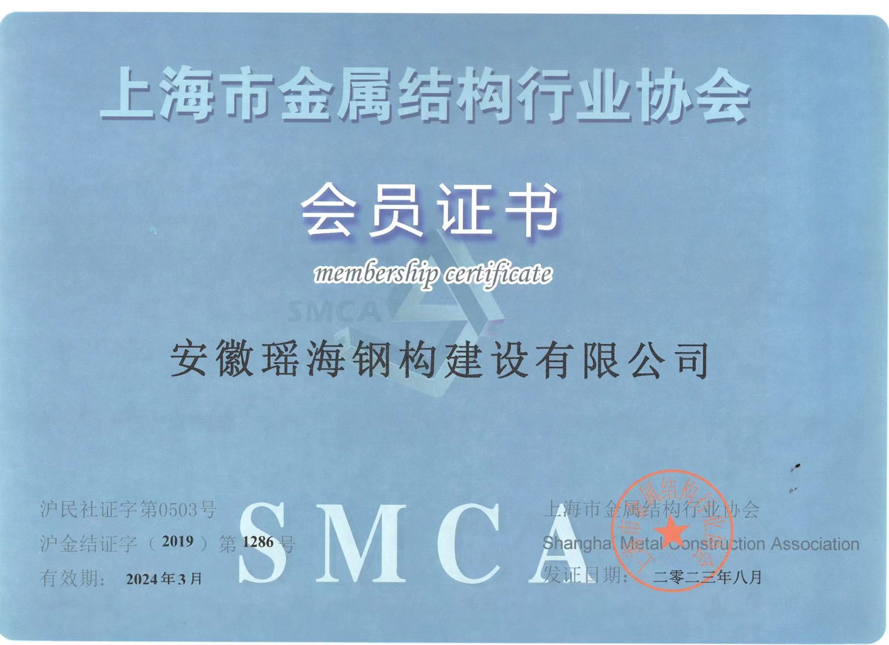 熱烈祝賀安徽瑤海鋼構建設有限公司加入上海市金屬結構行業協會!
