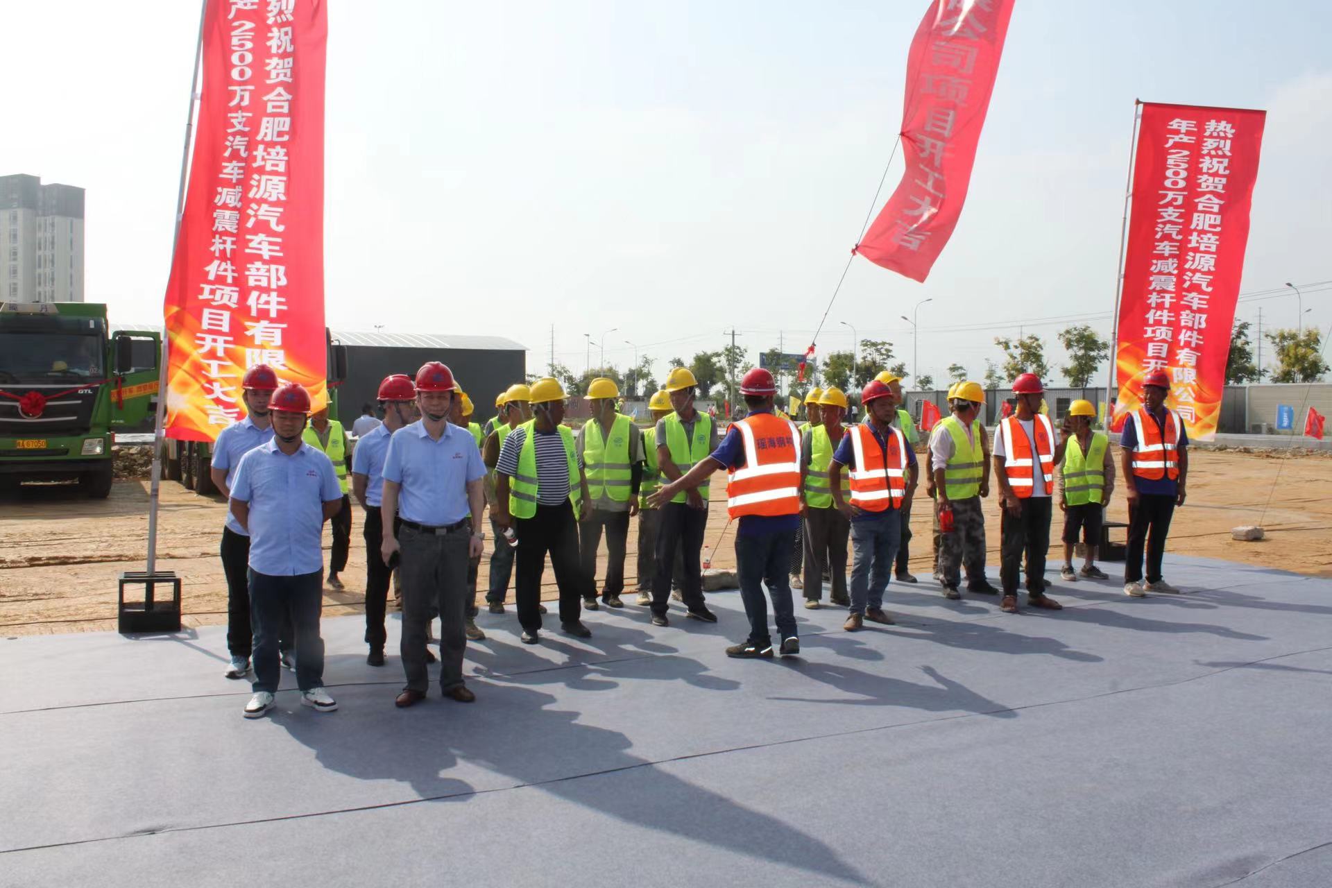 今天,我們滿懷激動和喜悅的心情,迎來了“合肥培源汽車部件有限公司年產2500萬支汽車減震桿項目”的開工,在此,我謹代表施工單位——安徽瑤海鋼構建設集團,對工程的開工表示熱烈的祝賀,向為項目順利實施,付出辛勤勞動的各級領導、各有關單位和和社會各界朋友表示最崇高的敬意!在工程開工之際鄭重表態:在工程建設中,我們將以高度的責任感和使命感,本著“建一個項目,樹一座豐碑”的理念,發揚艱苦拼搏、敢于勝利的精神,排除萬難,勇創一流做出自己應有的貢獻。