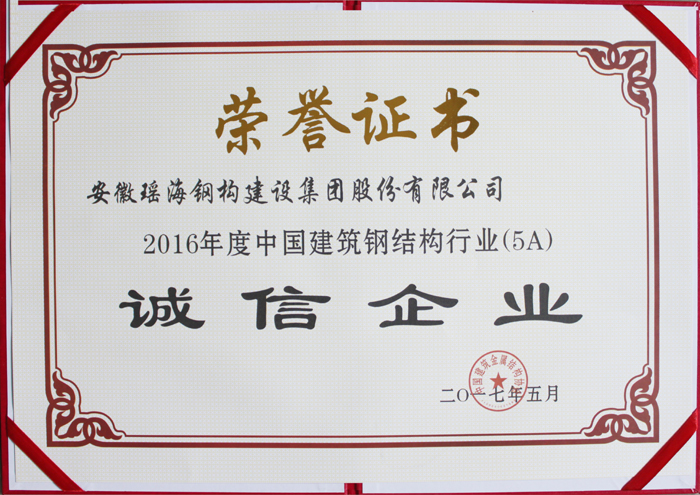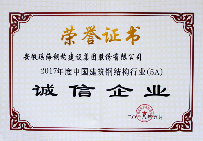安徽瑤海鋼鉤建設集團獲得“誠信企業”稱號