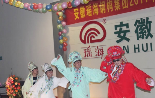 2012年1月15日,瑤海鋼構新春聯歡會在總結表彰會后隨即舉行,聯歡會現場熱鬧非凡,歡呼聲,雀躍聲,歌聲,笑聲頓時回蕩在上空,隨著一首首歌曲,一個個作品的出爐,時而高亢,時而抒情,時而動聽,時而投入,無不把每一位觀眾帶進了節目的意境中,工程系統魏建安將一曲《恭喜發財》唱出了所有的心聲,他的嗓音一出頓時響起了雷鳴般的掌聲,絕對不亞于專業歌手,小品《招聘》笑料百出,表演能力更是入木三分,倉庫自編自演的配樂詩朗誦《瑤海贊歌》更是讓所有員工掌聲不斷
