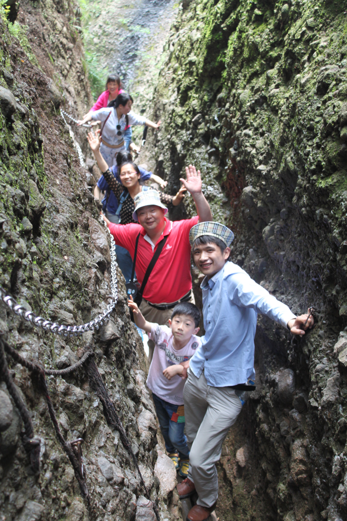 身體艱難攀爬之際,心頭欣賞著裂谷間疊翠流芳之美,享受著渾如天簌的自然幽靜之趣。爬完這三道閘不覺感慨在此游亦猶如走人生之路,惟選擇繼續(xù)前行和不懈努力才有登峰后的成就和喜悅。最后闖過“三道閘”終于到達(dá)了好漢亭,心中有一股征服大自然的豪情油然而生。