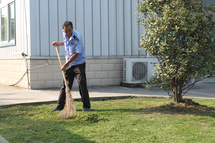 本報訊:2012年9月7日,室外依然高溫不下,烈日當頭,公司保潔員王存扣、“治理環境衛生”的凌德龍、保衛員仉長立、薛金龍在工會王主席的帶領下,不辭辛苦為公司美化環境服務,只見王師傅頭戴草帽,臂披護膝,手拿剪刀在修理參差不齊的花壇花草,那邊的凌師傅全身武裝,用割草機清除地面的雜草,隨著雜草被鏟除,他滿頭大汗,全身濕盡,最后保衛人員將鏟除的雜草清掃成堆并運送到公司外,數小時下來,公司的環境頓時美觀了很多,這歸功于他們的辛苦勞作。