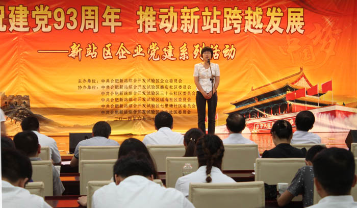 6月20日,新站區紀念建黨93周年大型系列活動在新站區禮堂舉行,內容豐富多彩:表彰、演講和演出融為一體,瑤海鋼構黨總支委員勞建新接受表彰并領獎,演講比賽也亦為激烈,最終瑤海鋼構企管中心副主任夏秀梅獲得優秀獎。